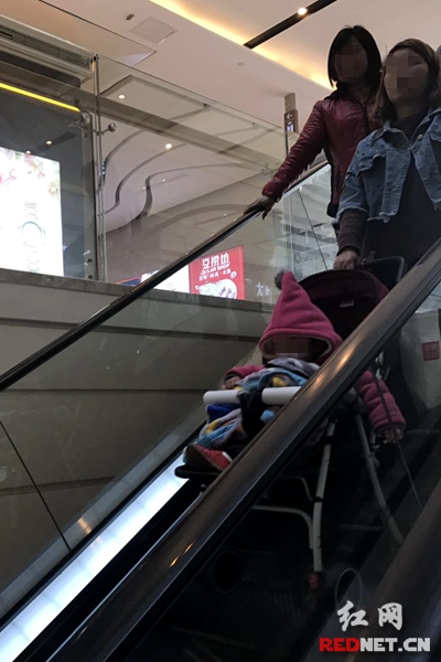 家长安全意识不够 多名家长推婴儿车乘扶梯