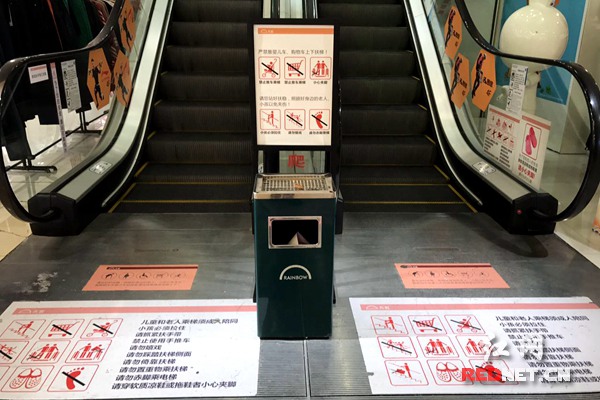 长沙仅少部分商场的手扶梯旁增设有护栏。