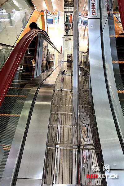 长沙多家商场手扶电梯无安全设施 中空带无防坠网