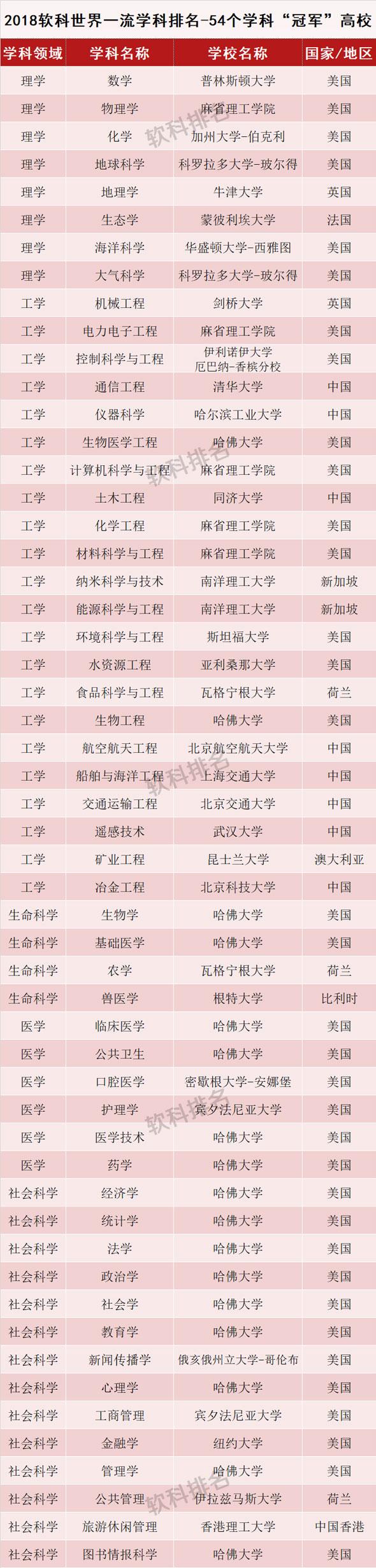 长沙晚报掌上长沙7月17日讯 据上观新闻消息 今天(17日)晨间,作为全球高等教育四大排名系统之一,拥有15年历史的“世界大学学术排名(ARWU)”披露新榜单。这份“2018世界一流学科排名”细分到54个学科,覆盖理学、工学、生命科学、医学和社会科学五大领域,共有来自83个国家和地区的1600余所高校,按照具体学科进行分类排名,形成多列纵队。