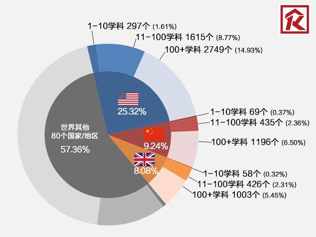 代表性国家世界一流学科排名分布图。