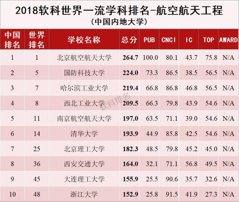 航空航天工程内地大学学科排名。