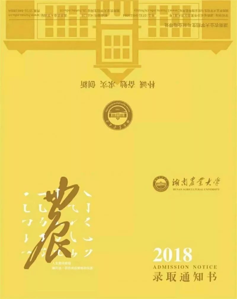 农大录取通知书主体采用了秋天的金黄色,也是稻穗成熟的颜色。水稻是农业根本,秋天也代表着收获,寓意着来到农大的学生们都将收获丰富的知识与美好的未来。