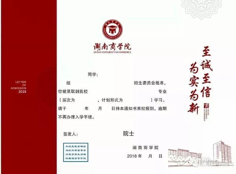 朴实无华的湖南商学院2018级录取通知书给人一种时尚、简洁、大气的艺术感!