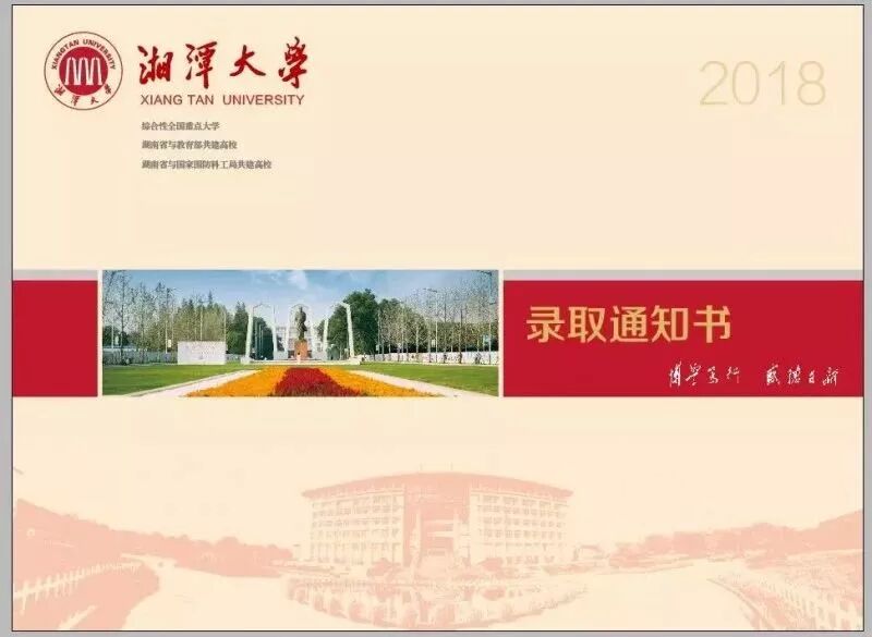 通知书主图是湖南中医药大学校门,为学校标志性建筑之一。向新生们展示了校园的概貌,同时也表达对新生的欢迎。
