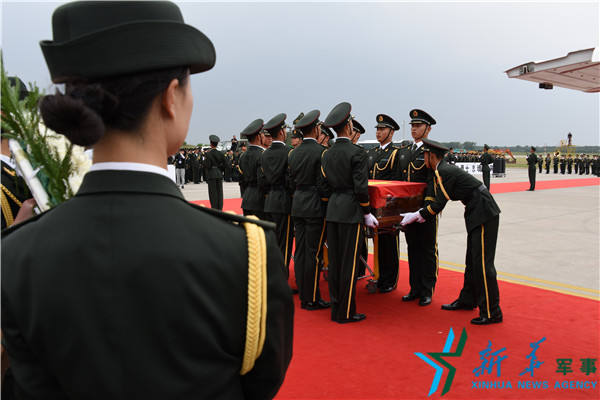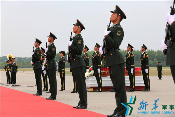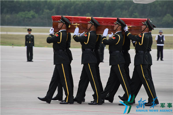 ↑6月9日下午,在迎接烈士灵柩回国的仪式上,礼兵守护着烈士灵柩。新华社记者曾涛摄