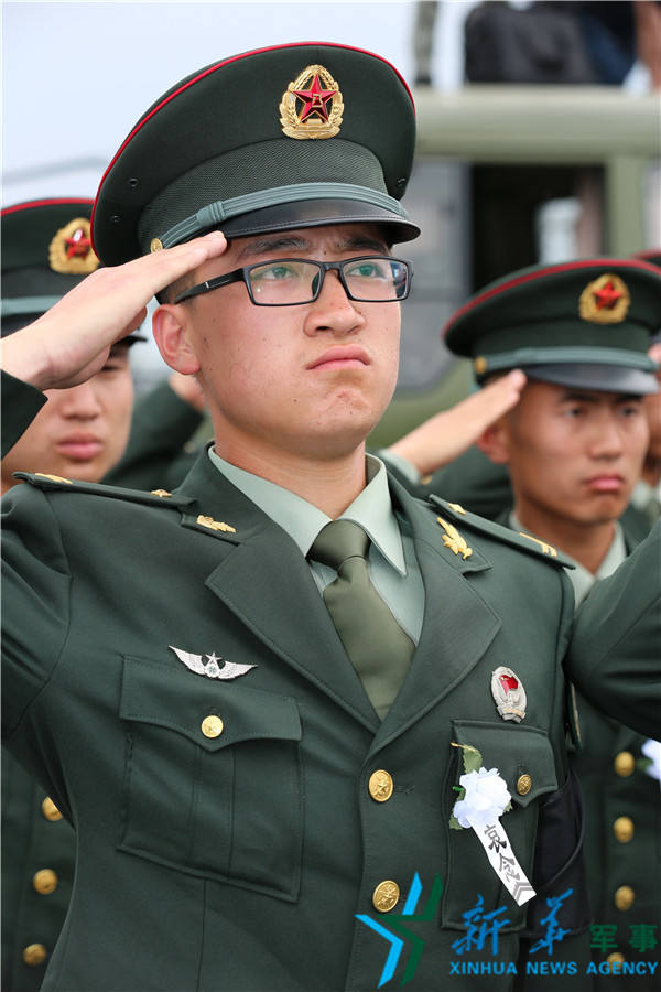 ↑6月9日下午,仪式现场的战士向烈士申亮亮敬礼。新华社记者曾涛摄