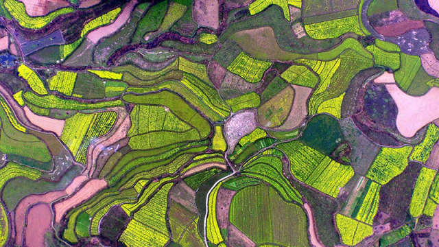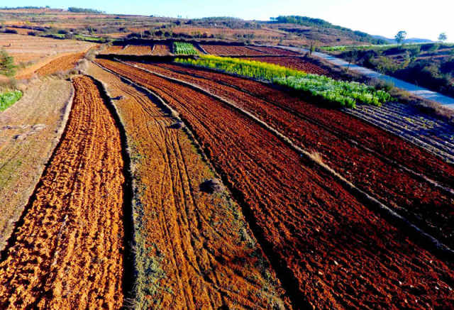 云南马龙县大庄乡石河村的红土地和农作物(2月4日摄)。新华社记者 杨宗友 摄