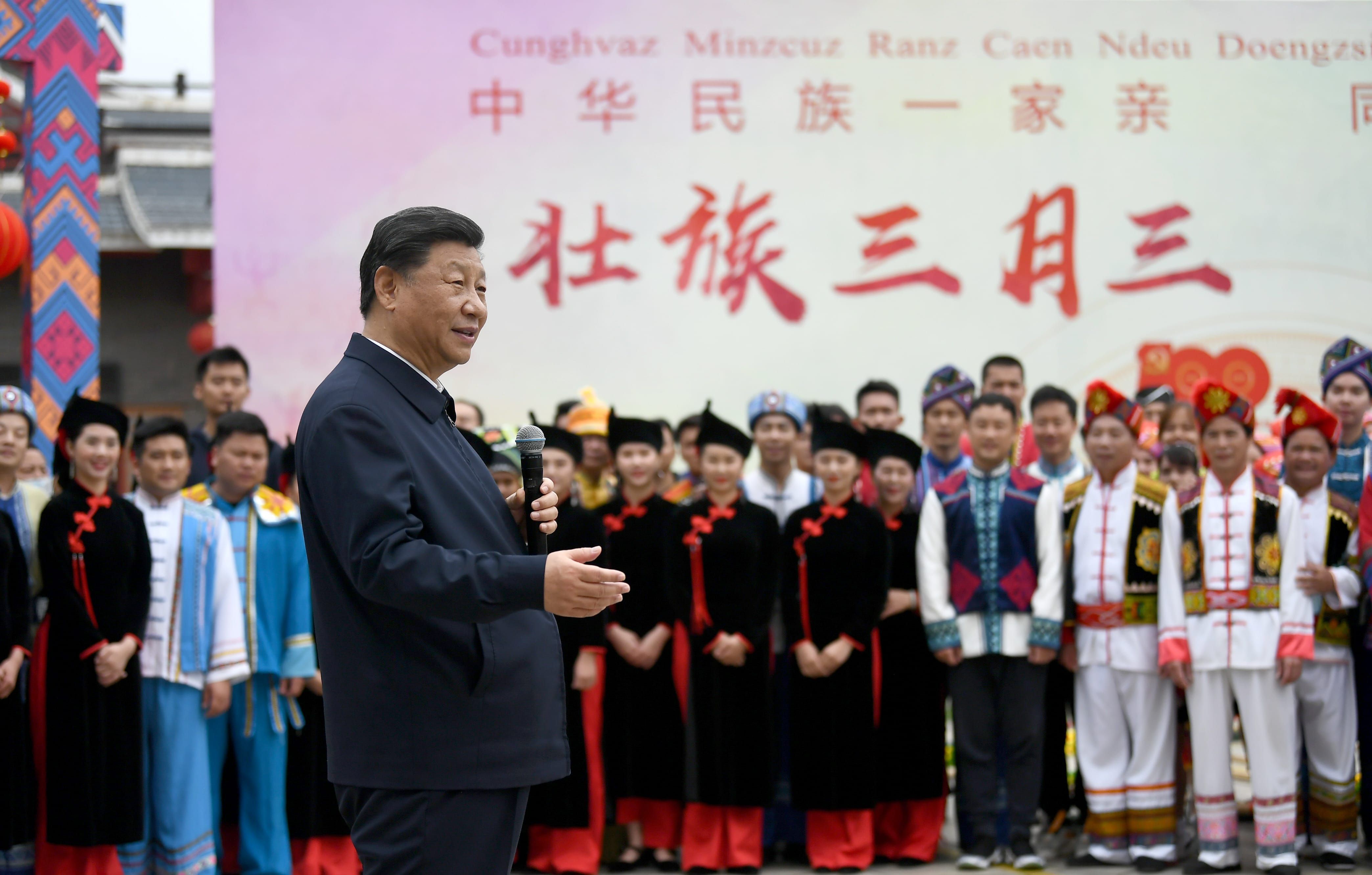 各民族共同团结进步、共同繁荣发展是中华民族的生命所在、力量所在、希望所在。习近平总书记表示,广西是全国民族团结进步示范区,要继续努力。他指出:“现在全中国56个民族都脱贫了,兑现了我们的庄严承诺。但我们还不能停步,接下来要向着第二个百年奋斗目标新征程迈进,一个民族也不能少,加油、努力,再长征!”