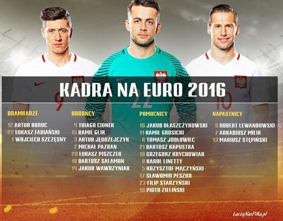 中场:16-库巴(佛罗伦萨)、11-格罗西茨基(雷恩)、6-约德沃维茨(华沙莱吉亚)、21-卡普斯特卡(克拉科维亚)、10-克里乔维亚克(塞维利亚)、8-利内蒂(波兹南莱赫)、5-马琴斯基(维斯瓦克拉科夫)、17-佩斯科(格但斯克莱吉亚)、23-斯塔尔津斯基(卢宾扎格列比)、19-泽林斯基(恩波利);