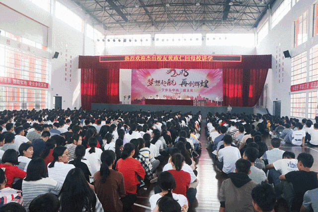 5月13日,暖阳普照,黄政仁带着对家乡的深切思念,回到了久别的高中校园,为学弟学妹们讲学,激励同学们奋发图强,刻苦读书,为国家振兴作出贡献。
