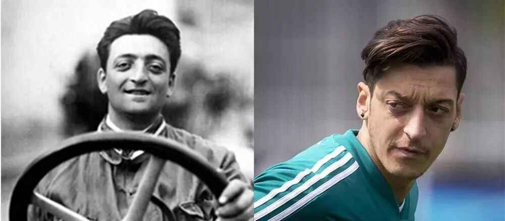 一直以来,都有人觉得厄齐尔像化了妆的新疆妹子迪丽热巴,不过,还有很多眼光“精准”的网友指出,与厄齐尔最为神似的,是下面这位——法拉利创始人。