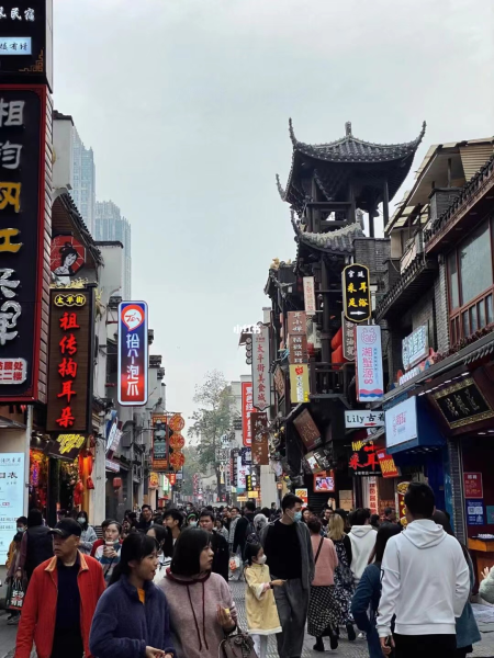 出了旗袍店,一向节俭的父亲小声嘀咕,说母亲不知自己几岁了,还“老夫聊发少年狂”。我便提议去一家饮品店歇歇脚。顺便买了几杯幽兰拿铁,给父母尝尝。母亲仔细看了一下杯子上的奶酪,尝了一口,说,果然好喝,有一股浓郁的奶香味。怪不得门口总是排着长长的队伍。除此之外,太平街还有好多特色小吃,无时无刻不在上演“舌尖的诱惑”。我买了一小份李四姐臭豆腐,递给父母品尝。臭豆腐外酥里嫩,一口咬下去,汁水爆浆,醇香可口,怎么吃都不过瘾。小摊上的糖油粑粑色泽金黄,让人一看就有食欲,吃起来软软的、糯糯的,带着浓郁的桂花香。记得小时候上街,父亲必买给我吃。直到我毕业参加工作,有一回和父亲并排走在大街上,他忽然指着路边的小吃摊说,我买几个糖油粑粑给你吃。我立时红了脸,父亲这才意识到那个扎着朝天辫、跟在他身后蹦蹦跳跳的小姑娘已经长大成人了。卖凉粉的老夫妻热情地招揽我们品尝,凉粉晶莹剔透,老人家刮完凉粉后,装入一次性碗中,放上各种调味酱,凉粉入口即化,唇齿间便满满都是“童年的味道”。老担馄饨更是一绝,馄饨皮是店家手工制作的,薄如蝉翼,现包鲜肉馅,放入开水里翻滚几下,再捞进事先配好佐料的碗中,爽滑鲜美。长沙米粉也是声名远播。一位外地小伙子端着一碗撒了辣椒油的米粉蹲在街口,大口大口地吃着,细密的汗珠从额头流下来,我问他好不好吃?他笑着说:“辣,但过瘾。”