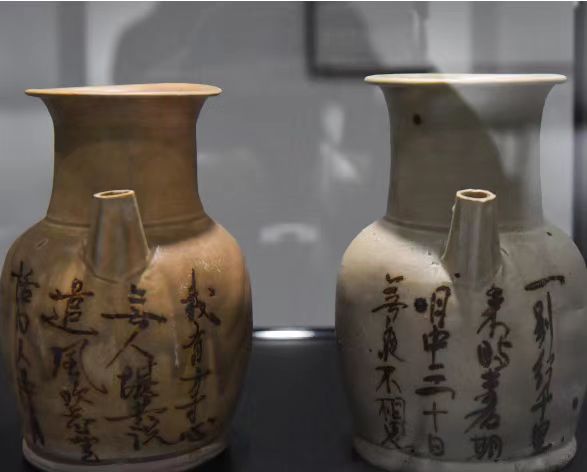 写有诗文的铜官窑陶器。长沙晚报全媒体记者 邹麟 摄