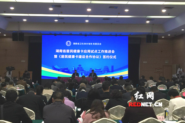 长沙晚报掌上长沙3月17日讯 据红网消息(记者 易征洋 通讯员 黄德建)今天下午,湖南省卫生计生委在长沙召开湖南省居民健康卡应用试点工作推进会。会议由省卫生计生委党组书记詹鸣主持,省卫生计生委主任张健和中国工商银行湖南省分行、中国农业银行湖南省分行、中国建设银行湖南省分行、中国交通银行湖南省分行、中国民生银行长沙分行、湖南省农村信用社联合社、长沙银行等7家合作银行主要负责人签订了《居民健康卡建设合作协议》,长株潭卫生计生委主要负责人、委直属和联系医疗卫生机构主要负责人向张健递交了居民健康卡应用试点责任状。
