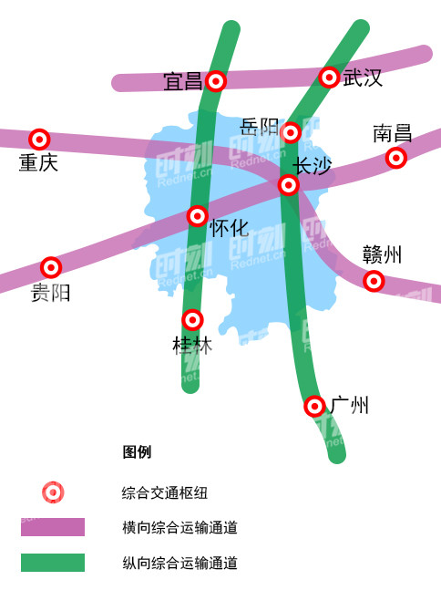 提升长沙、青岛、南京等全国性综合交通枢纽功能,推进包括岳阳、怀化等城市在内的综合交通枢纽建设。