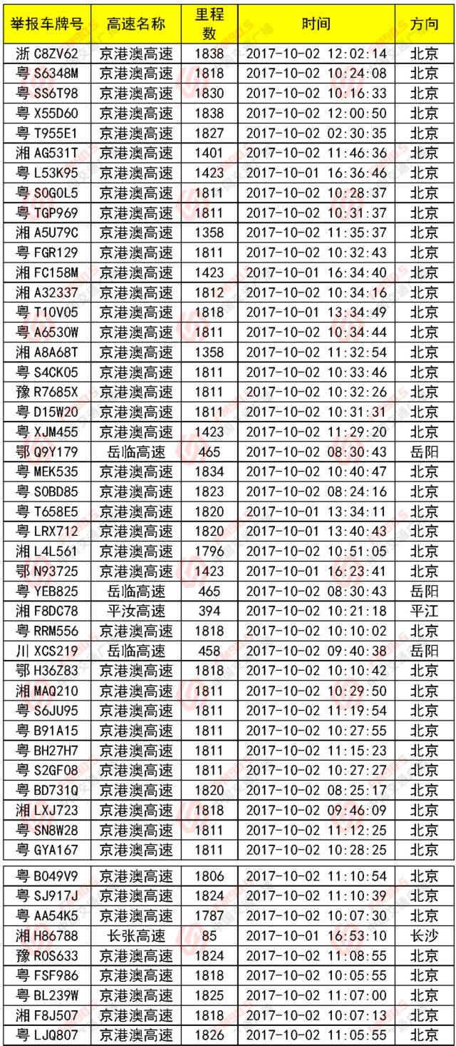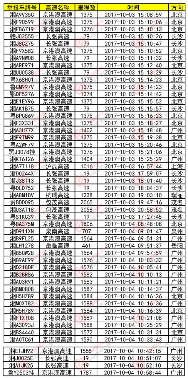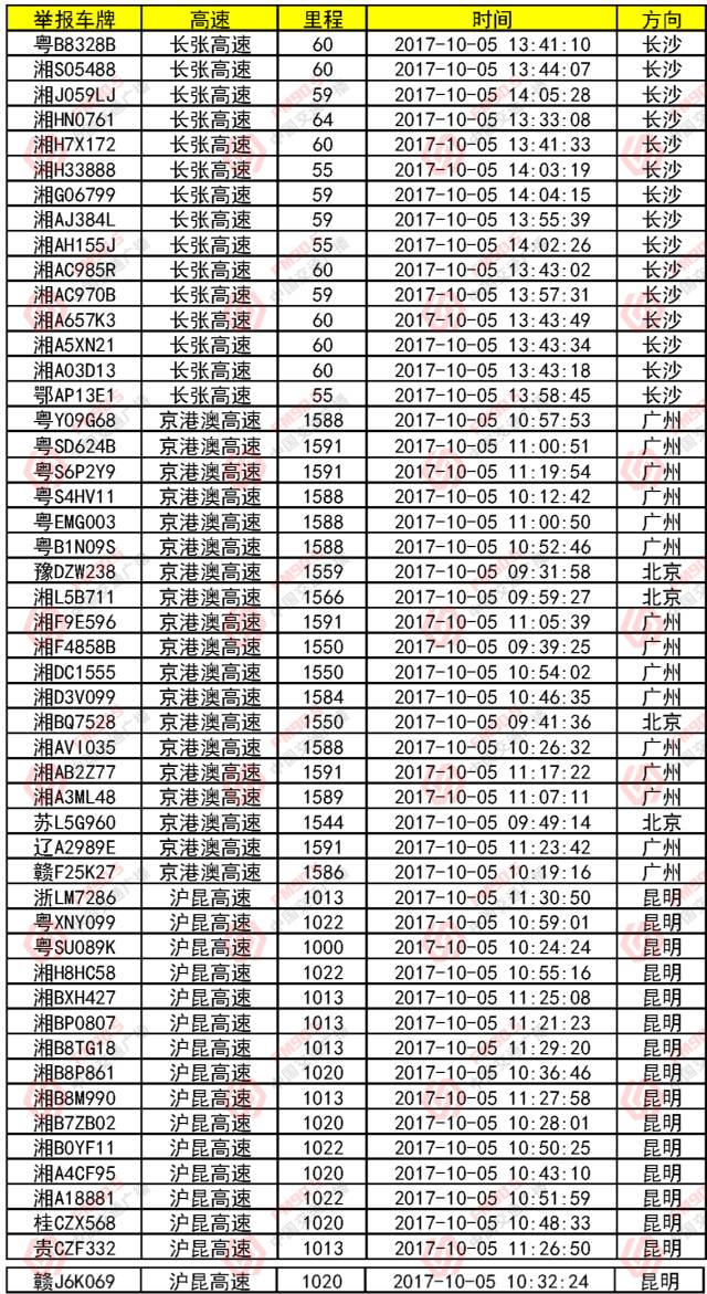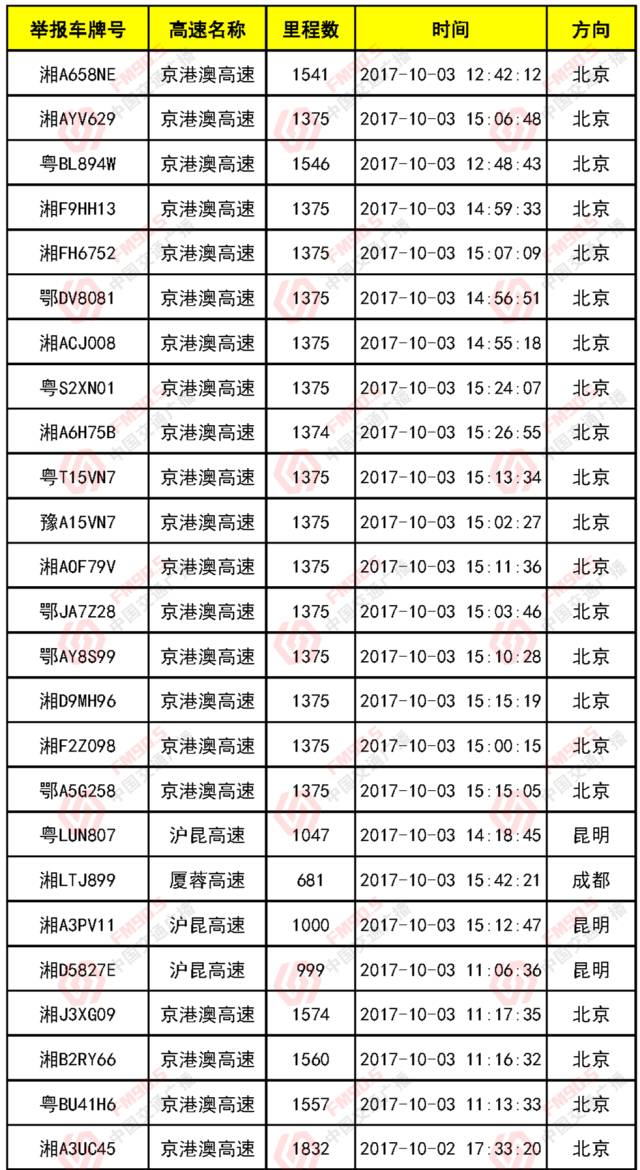 10月7日至8日高速交通违法部分“随手拍”黑名单