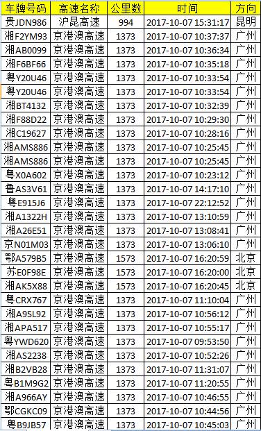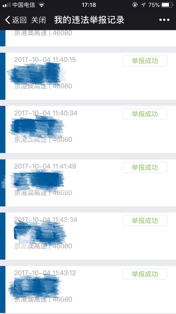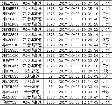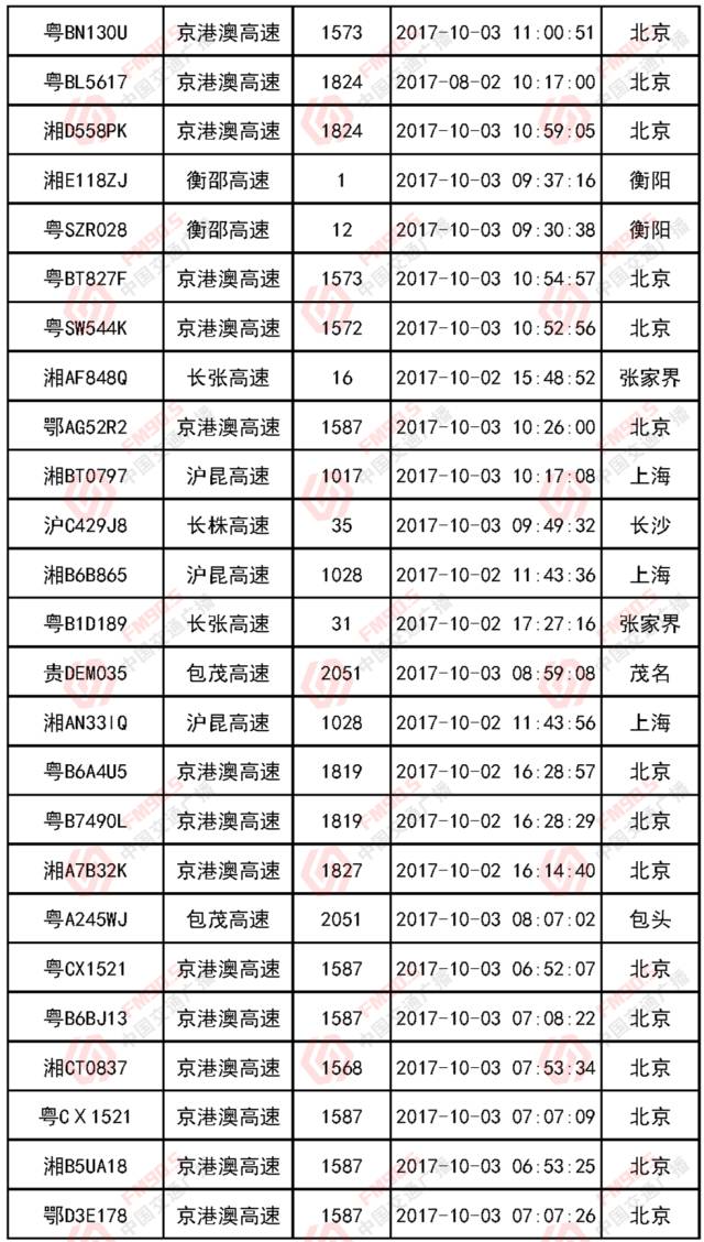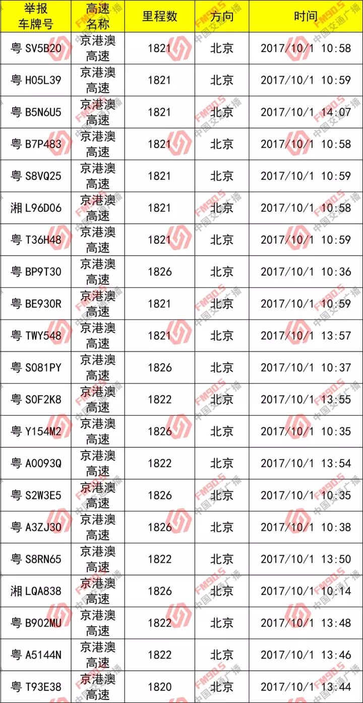 10月7日至8日高速交通违法部分“随手拍”黑名单