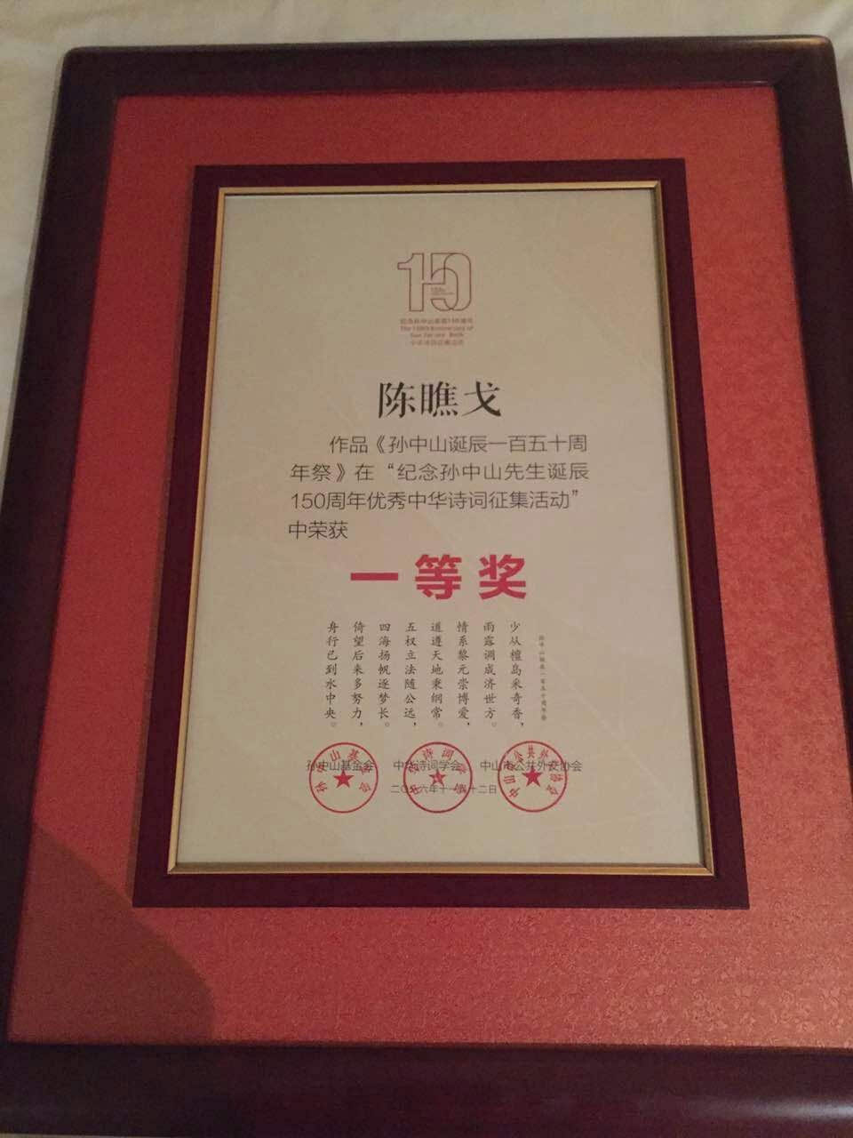 附陈樵哥获奖作品《孙中山诞辰一百五十周年祭》:
