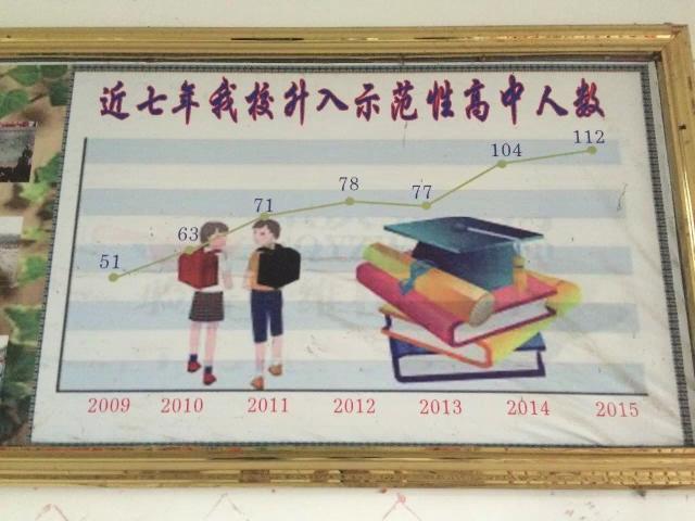 走进大门,首先是一组让家长心动的数字:该校考入湖南省重点高中的学生,从2009年的51人上升至2015年的112人。数字上方,盘着一条向上延伸的傲人曲线。