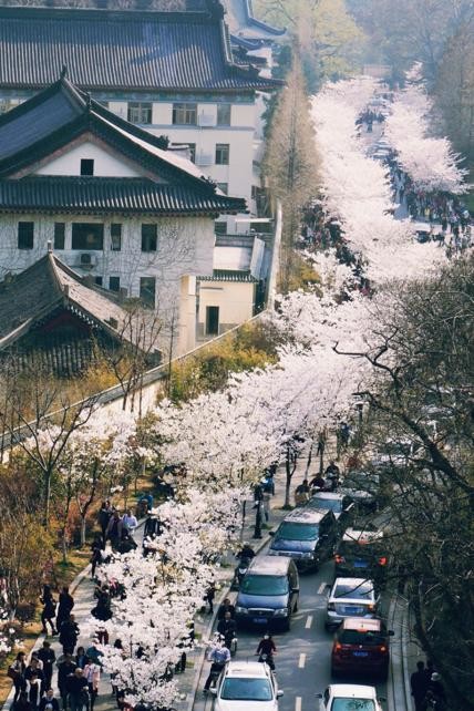 东南大学的东门就挨着成贤街,来这条路上看樱花的人也是蛮多的。这里是不是和武汉大学的樱花美景有几分相像呢?
