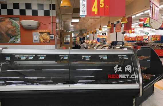 走进超市内,虽然是周末,但前来购物的顾客并不多,记者发现多个货架上的货不全,熟食区几乎已经歇业,往日诱人的自作熟食完全看不到踪迹,其他区域比如生活用品区、食品区也出现不同程度的缺货,很多货架上也贴满了“特价”“清仓”等促销条。