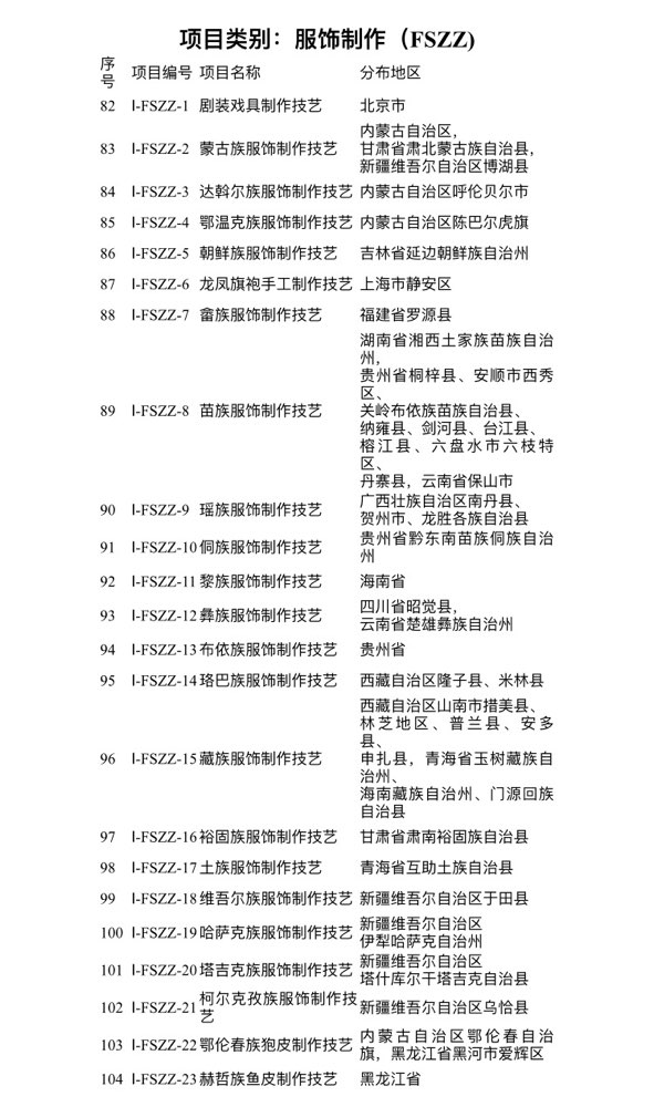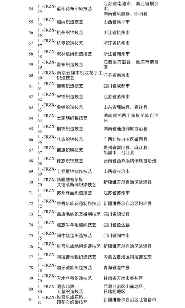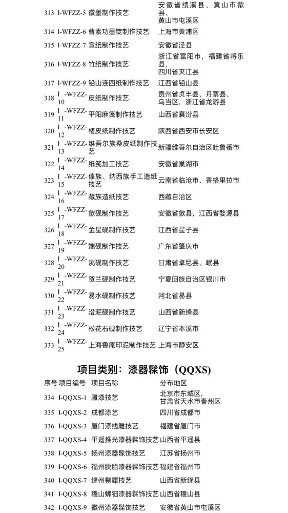 附:第一批国家传统工艺振兴目录