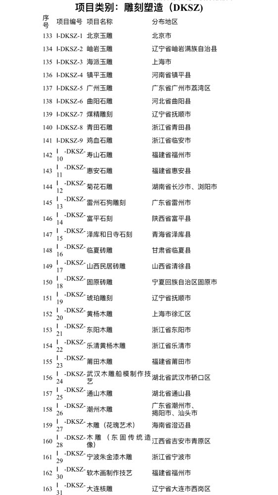 长沙晚报掌上长沙5月24日讯(记者 刘树源)记者今天从文化和旅游部官网了解到,日前,文化和旅游部、工业和信息化部联合发布第一批国家传统工艺振兴目录,全国共有383个传统工艺项目入选,涵盖纺染织绣、服饰制作、编织扎制、雕刻塑造、家具建筑、金属加工、剪纸刻绘、陶瓷烧造、文房制作、漆器髹饰、印刷装裱、食品制作、中药炮制、器具制作等14个门类。
