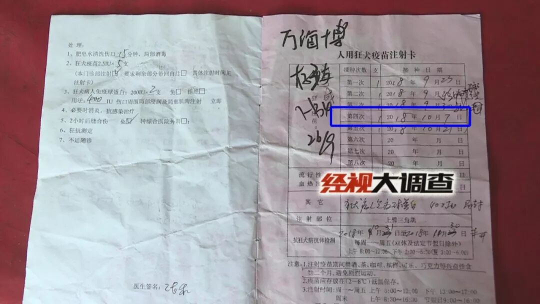 长沙晚报掌上长沙11月11日讯 据经视大调查消息 湘乡毛田镇居民万许明向我们反映,他的孩子9月23日上午在学校外的小卖铺被狗咬伤,孩子当天就送往医院,进行了伤口处置和注射疫苗,10月7日,本是万海博打第四针疫苗的日子,没想到他却开始发热呕吐,两天后,在娄底市中心医院宣告死亡。他在悲痛之余质疑:儿子已经注射了疫苗,为什么还会狂犬病发作?他同时质疑,小孩被咬当天,他们去到毛田镇卫生院和娄底市疾控中心都没有进行处理,这又是何故呢?经视大调查记者赶赴湘乡毛田镇,了解事情的始末。