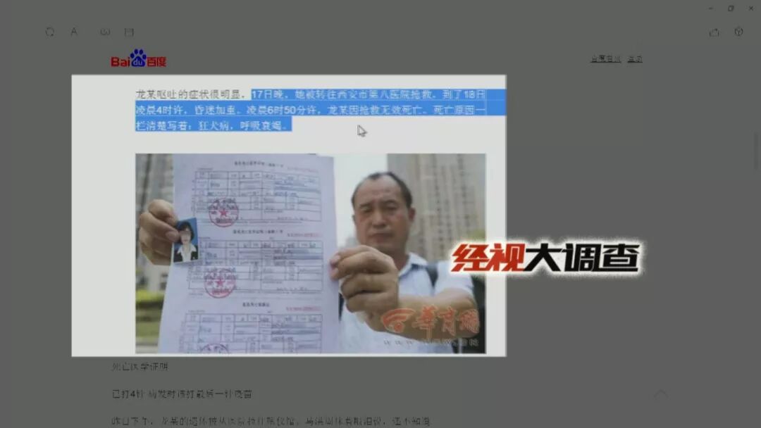 记者发现,媒体报道多起注射疫苗后仍然发作的病例。今年9月,浙江省湖州市南浔区六岁男童小唐被狗咬伤后虽然及时就医,注射了疫苗,14天后仍狂犬病发作死亡。