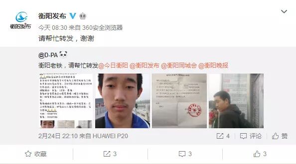 列车于第二天即2月21日12时5分到达衡阳站,刘方中的父亲在12点50分左右询问他是否到校,“当时他说已经到学校了,通话差不多就1分钟,在此后就再也联系不上他了。”刘女士称。