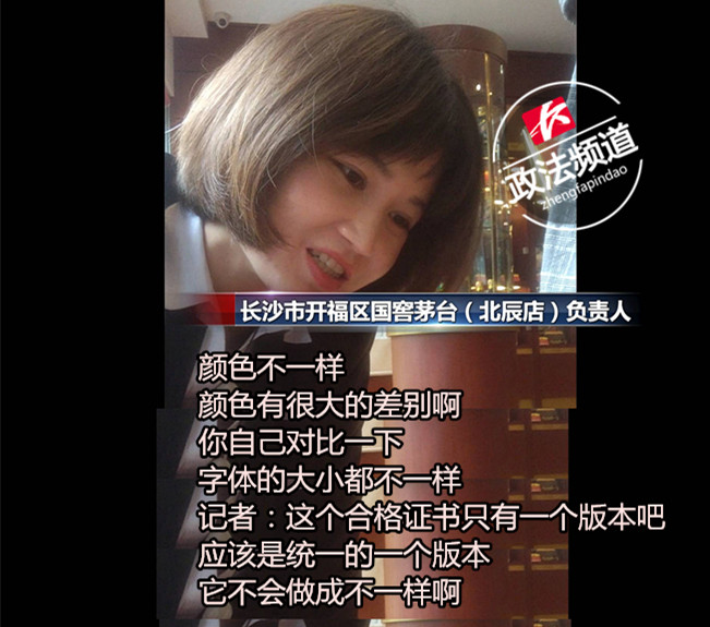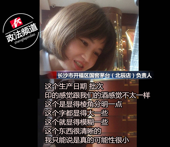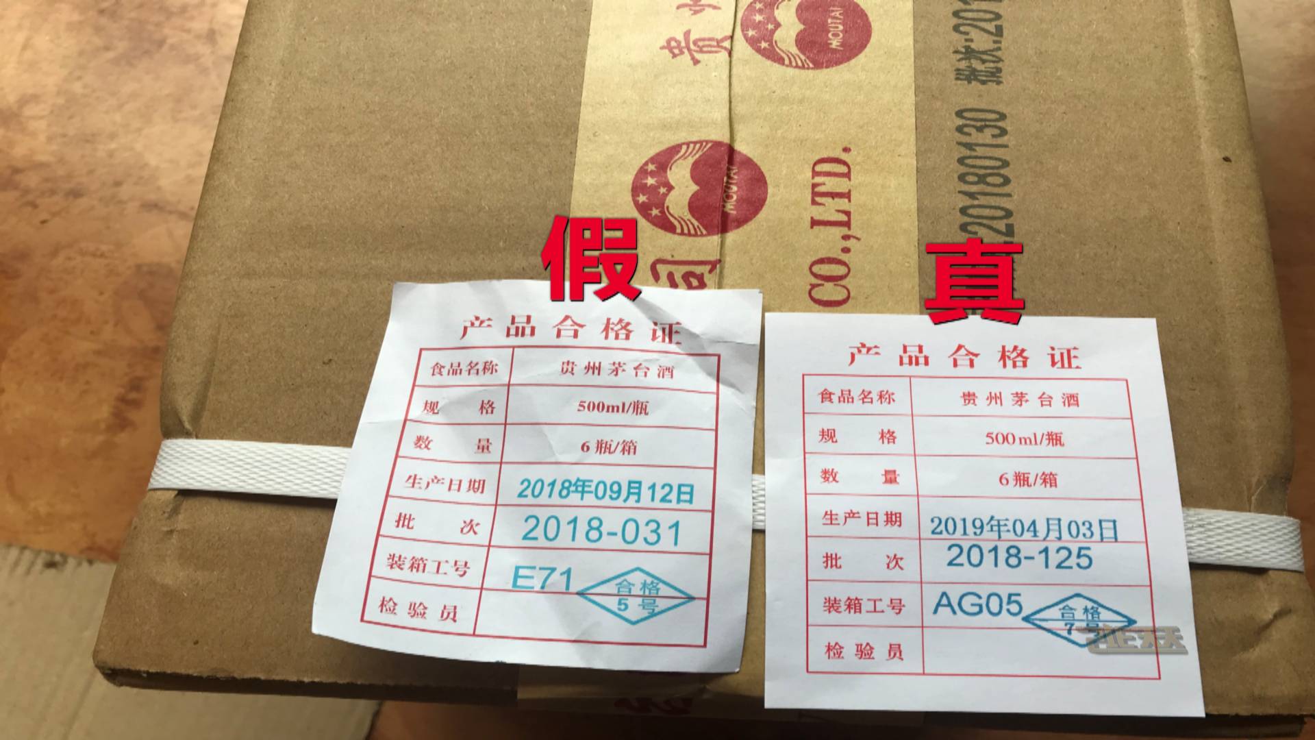 这位负责人指出,除了生产日期字迹不同之外,产品合格证,甚至包装的纸箱也与正品大相径庭。此外,包装也明显存在差异,正宗飞天茅台酒的纸箱经过机子压缩、裁剪后很精致,但是左先生购买的茅台酒纸箱明显很粗糙,侧面还能看见纸“孔”。