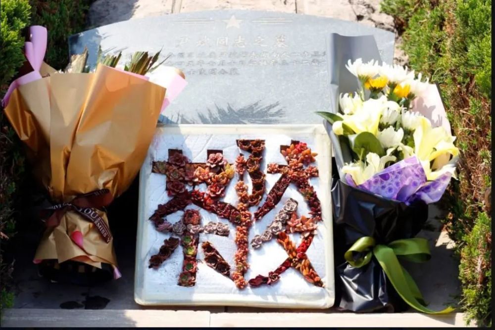 梁斌说,他们用多肉植物制作了一个“茶陵”字样的花环,还准备了鲜花。尹斌烈士的公墓安静地躺在两排青翠的松柏树之间,他仔仔细细地将墓碑擦拭了一遍,敬献了花环和鲜花,代表茶陵老乡向尹斌烈士鞠躬致敬。
