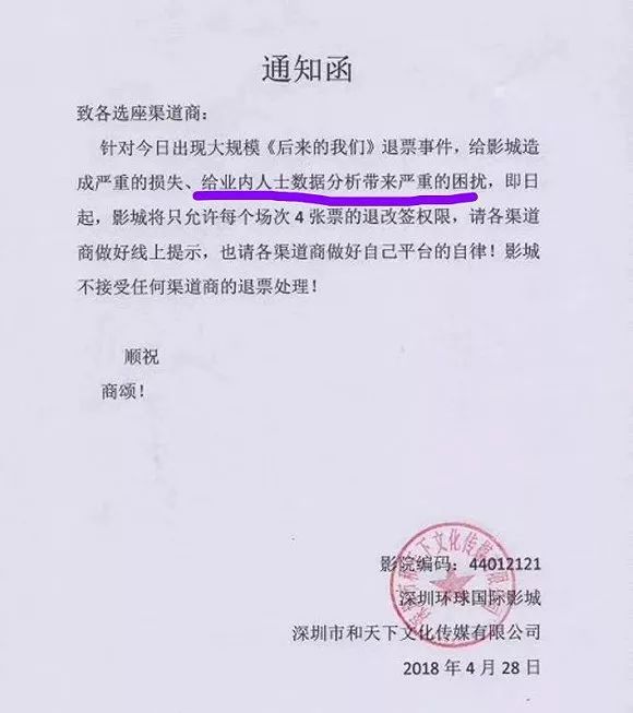 据称,昨晚很多院线已经进行了应急措施,限制或禁止异常退票。