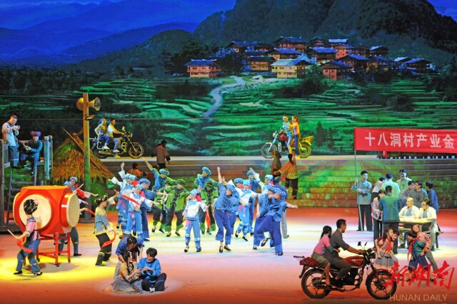 该剧自去年9月27日首次公演以来,先后在长沙、北京演出13场,“圈粉”无数,全网点击量达4.28亿次,微博话题#大地颂歌#阅读量突破18.8亿次,豆瓣评分达9.0,并入选庆祝中国共产党成立100周年舞台艺术精品创作工程“百年百部”创作计划重点扶持项目。被誉为“艺术的史诗”“时代的史诗”,湖南文艺的扛鼎之作、高峰之作,提供了艺术融合的创新典范。