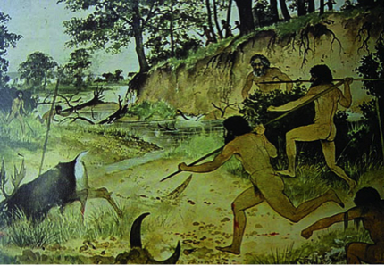 很久很久以前的原始人类中,就是男人来负责找吃的,虽然现在很多男人都已经丧失这个本能了……当时他们找吃的时候可谓孔武有力,身披树叶,左手一根棍儿,右手一块石头,基本都是这个造型。