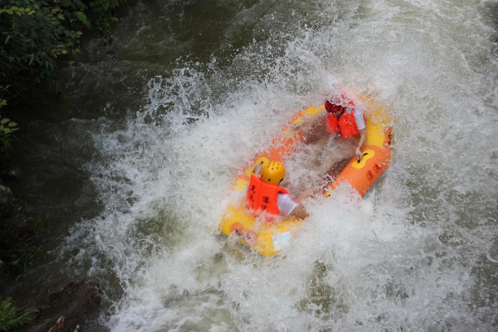 九龙峡漂流全程5公里,落差110米。采用国际流行的自助漂流,使用国内最先进、最安全的双人漂流艇,在体验惊险刺激的同时无需担心安全问题。九龙峡谷两岸群峰嵯峨,松林葱笼竞秀,竹海婆娑多姿,田园风光旖旎。漂流河道潭壑交错,九泷十八滩,跌宕腾挪,如蛟龙起舞。漂流九龙峡,既可感受漂流的惊心动魄,又可领略南岳之秀,因此被誉为“中华五岳第一漂”。