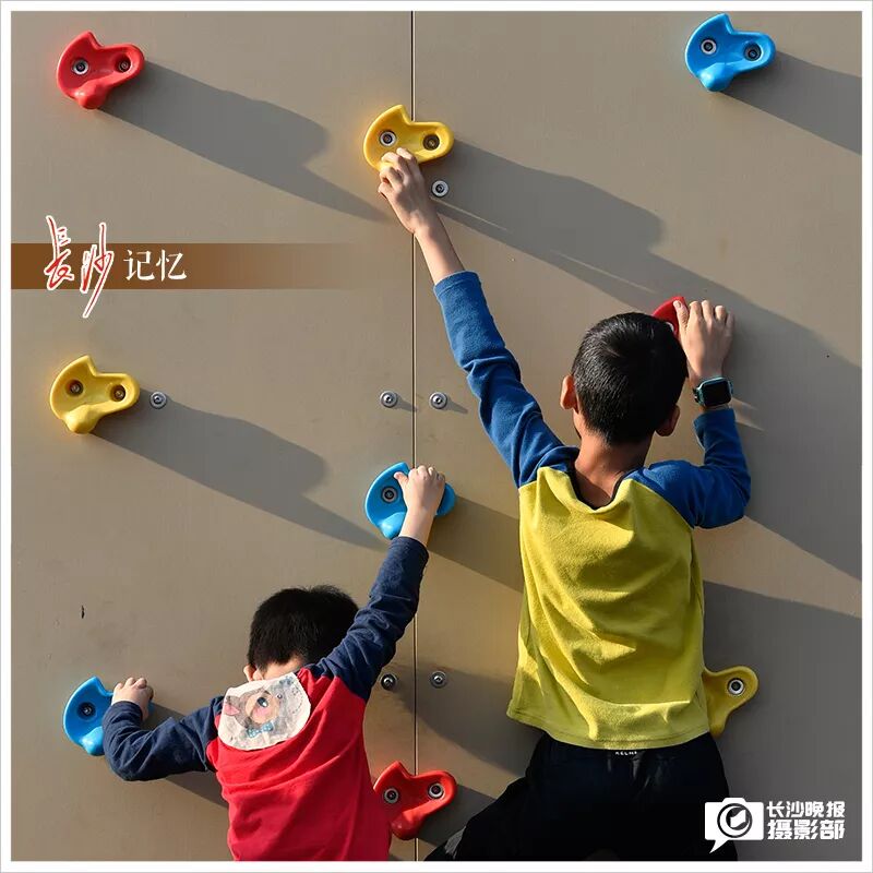 2019年11月29日,在体育公园内体验攀岩的孩子们。