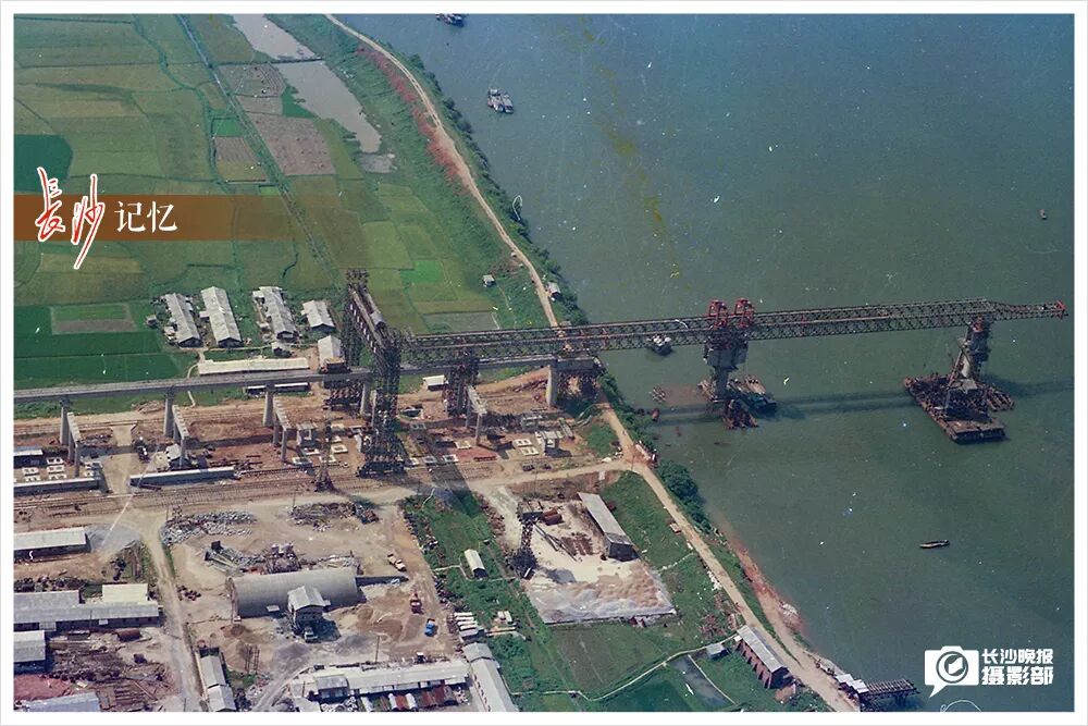 1996年,建设中的月亮岛大桥。该桥于1999年10月建成通车,是一座公路铁路两用桥。
