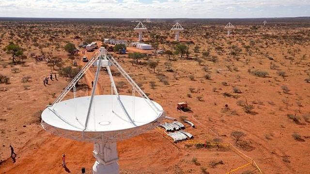 澳大利亚平方公里阵列射电望远镜(ASKAP)位于澳大利亚的默奇森地区,由36架碟形天线组成,每架天线的直径为12米。这一区域没有其他无线电信号干扰,可以清楚地接收到来自宇宙的信号。