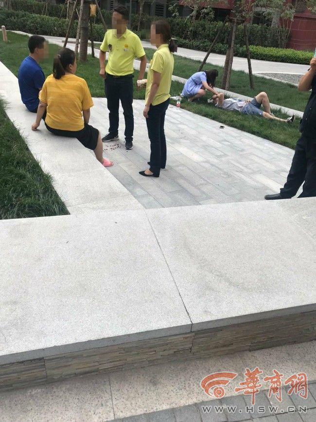 这时,物业工作人员和保安赶来拉架,李女士说她看见丈夫拿着刀,怕出事,就赶紧把刀抢走。抢刀过程中,一名保安受伤,丈夫和遛狗男子也分开了。然而,等她将孩子送到邻居家出来,丈夫和遛狗男子又厮打在一起。张先生右手食指无名指受伤,缝了4针,遛狗男子眼部受伤。事发后,物业工作人员报了警,公安雁塔分局曲江派出所民警赶到现场,张先生跟随警方做了笔录。