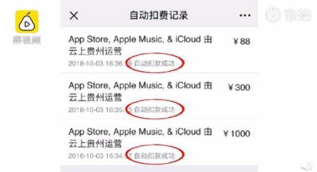 刘女士就这样眼睁睁看着自己的账户接连被扣除2000元,又自动关闭了一项苹果服务!