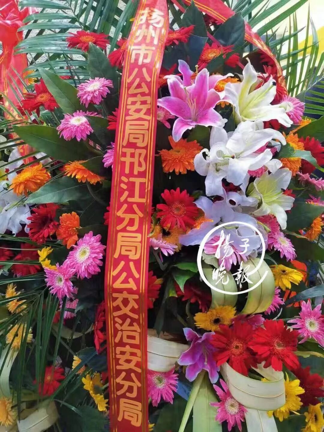 4日上午9时许,朱某将四个落款分别为“扬州市公安局”、“扬州市纪检委第四巡调组”、“扬州市公安局邗江分局治安大队”、“扬州市公安局邗江分局公交治安分局”的花篮,摆放在其奶茶店门前。