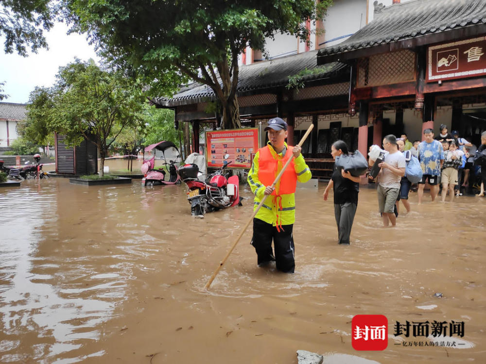 8月18日,洪水持续上涨,漫进乐山大佛佛脚平台。凌晨5时10分许,大佛景区管委会开始转移景区住店游客。到早上10时30分,已全部转移至大佛景区博物馆和办公楼食堂,共计转移住店游客180人。