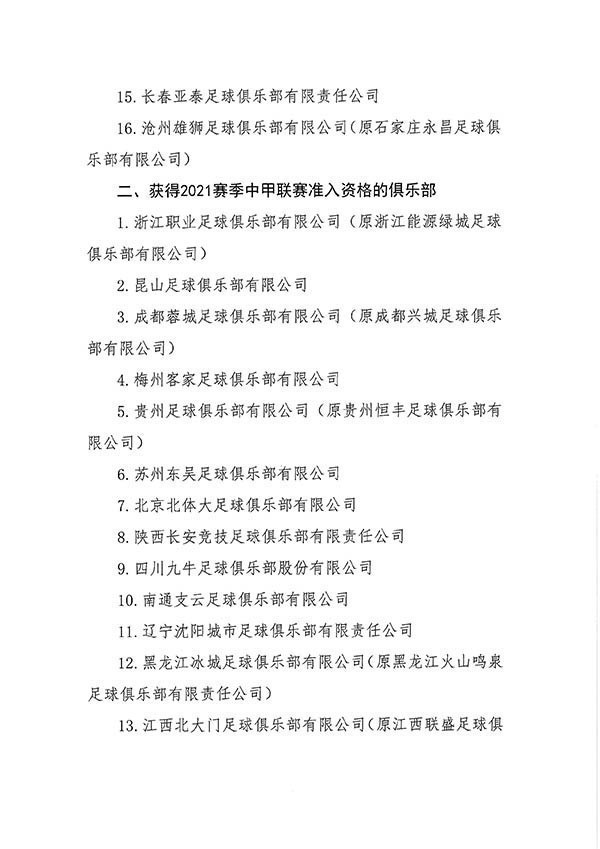 长沙晚报掌上长沙3月29日讯 据中国足球协会网站消息 3月29日下午,新赛季中国足球职业联赛的准入名单终于出炉。根据中国足协公布的名单,天津津门虎获准踢中超,而中超卫冕冠军江苏苏宁队则未能上演奇迹,就此暂时告别职业联赛舞台,由沧州雄狮递补参加2021赛季的中超联赛。此外,泰州远大、内蒙古中优、北京人和、深圳壆岗和江苏盐城鼎立都未获得新赛季职业联赛的参赛资格。