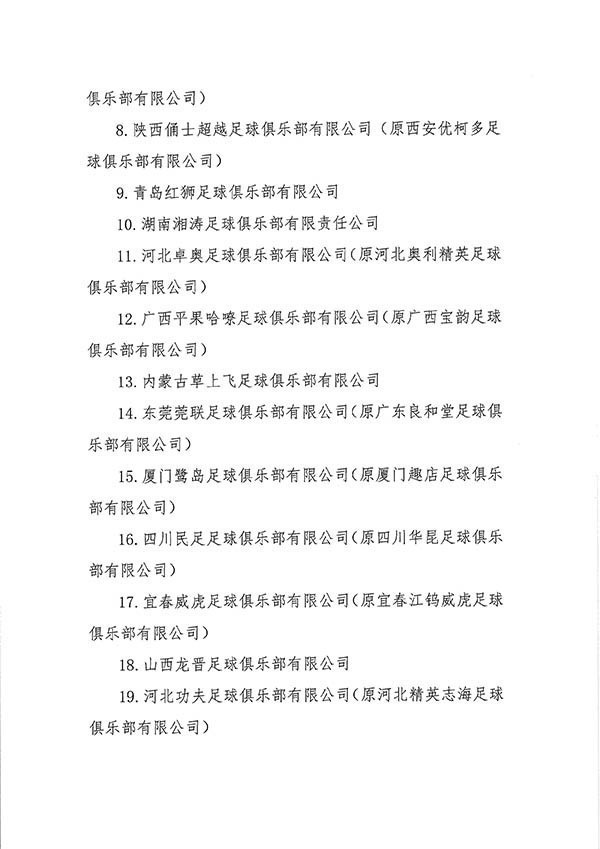3月29日,中国足协公布了新赛季各级联赛准入名单,江苏苏宁、泰州远大、内蒙古中优、北京人和、深圳壆岗和江苏盐城鼎立无缘新赛季联赛,中国足协官方公布,相关球员不占用新转入俱乐部的国内转会名额。