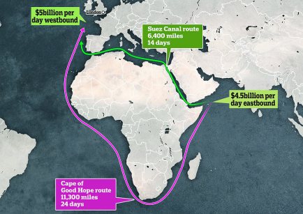 为什么近300艘船宁愿等待疏通,也不绕道走好望角呢?