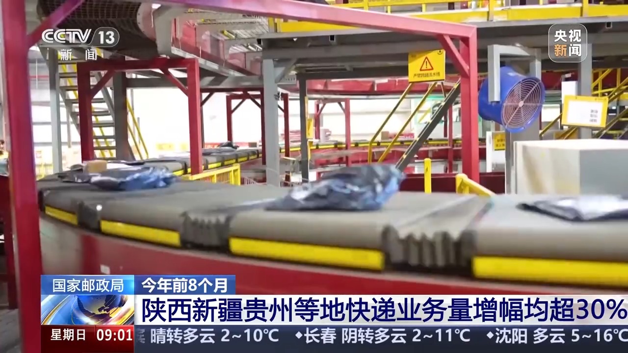 今年以来,我国通过加快推进中西部地区的市级分拨中心、县级配送中心和乡镇服务站的标准化建设,快递服务能力得到全面提升。前8个月,陕西、新疆、贵州、青海等地快递业务量增幅均超过30%。