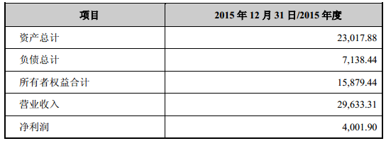 柯莱逊2015年营业收入达2.96亿元,净利润为4000万。柯莱逊总资产为2.3亿元。