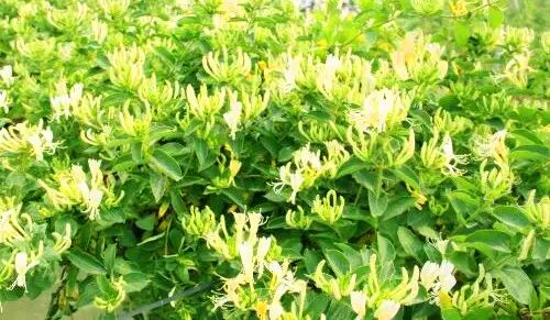 3、金银花。清热解毒、凉散风热。取金银花30g、绿豆100g,煎水服,用于咽喉肿痛、热毒泻痢、中暑等。